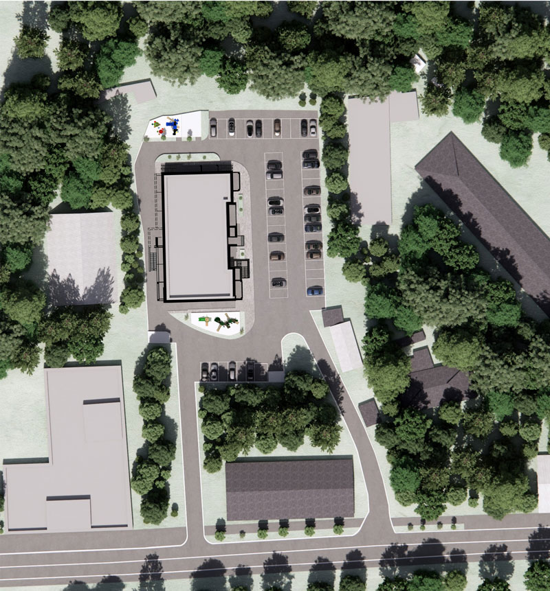 На території розташовано житловий будинок з облаштованою парковкою для автомобілів. Перед будинком — озеленена зона з газоном, декоративними деревами та кущами. Уздовж периметра проходять зручні пішохідні доріжки, що з’єднують усі функціональні зони ділянки. Територія організована для комфортного проживання та відпочинку на свіжому повітрі.